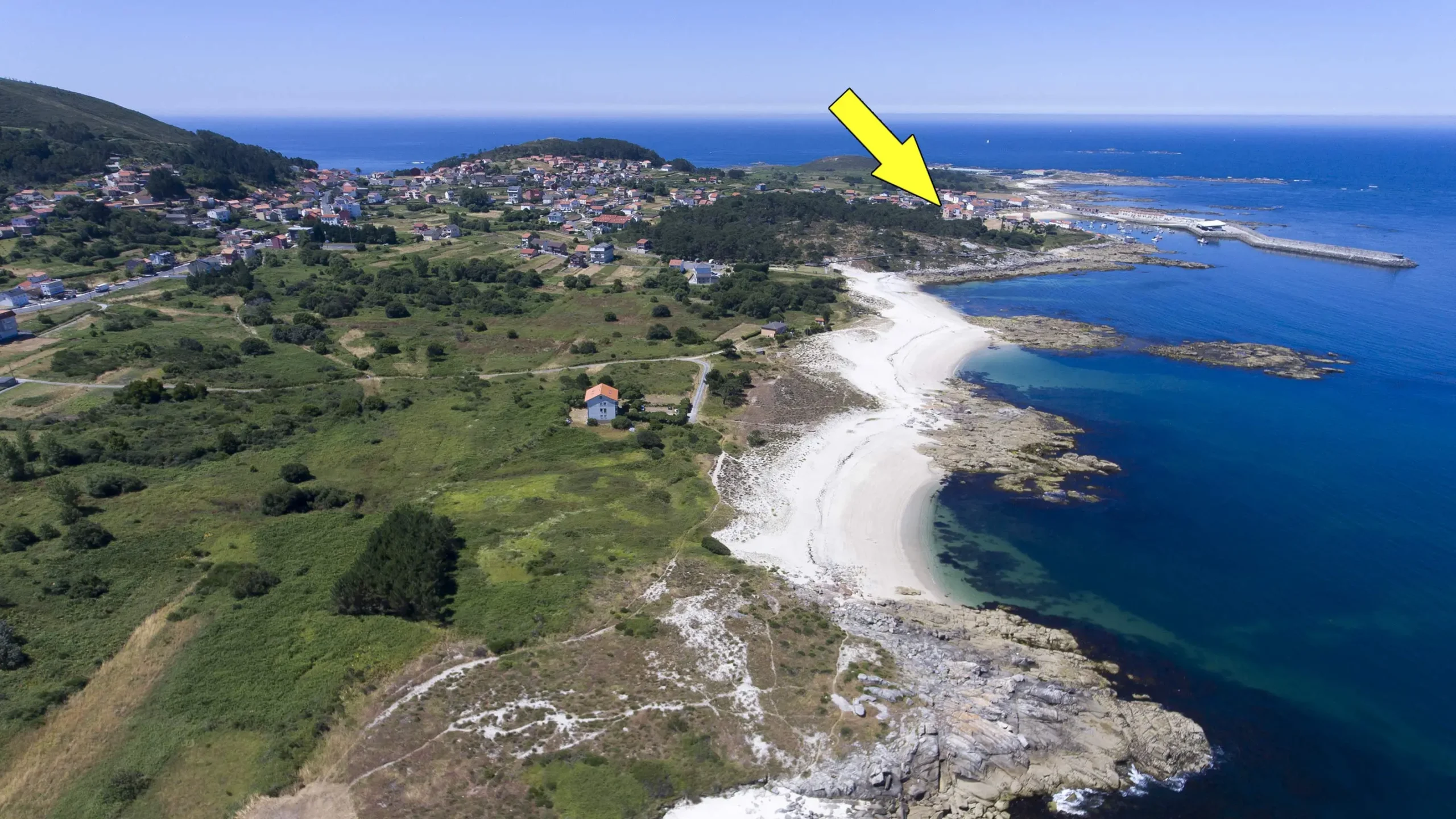 Apartamento de planta baja con terraza privada, situado en el pintoresco pueblo marinero de Lira, a solo 200 metros de la playa de Portocubelo y a 500 m de las playas de Mar de Lira.