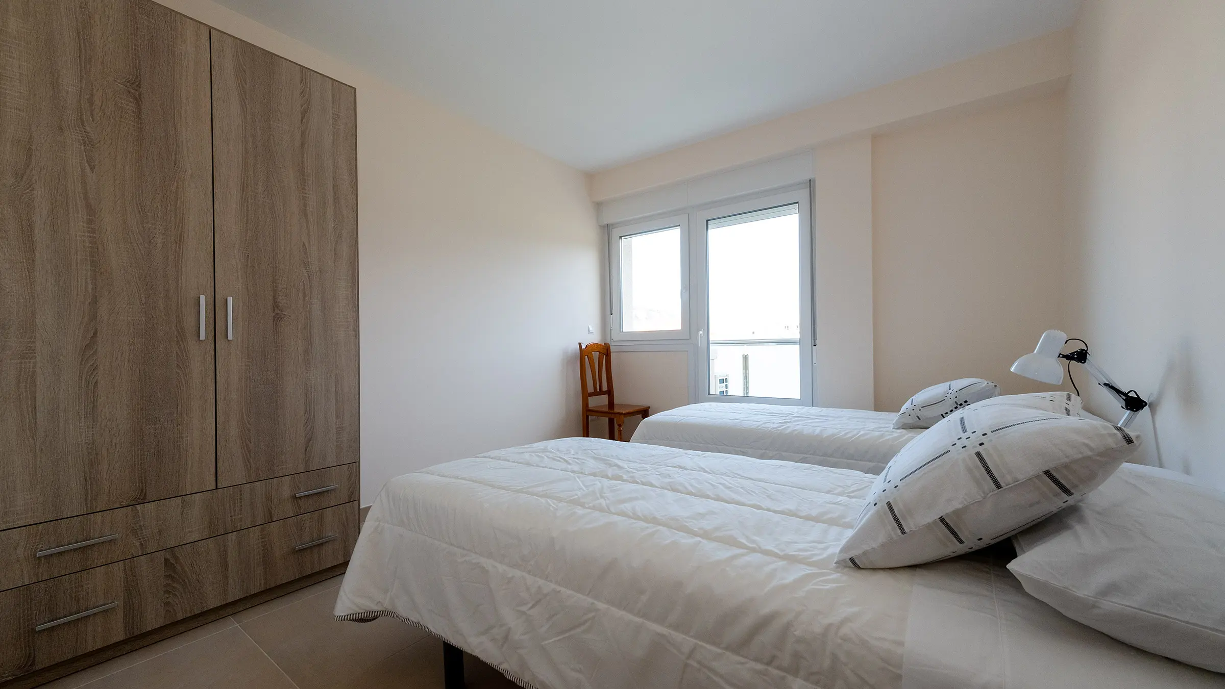 Dos habitaciones dobles y un baño.
