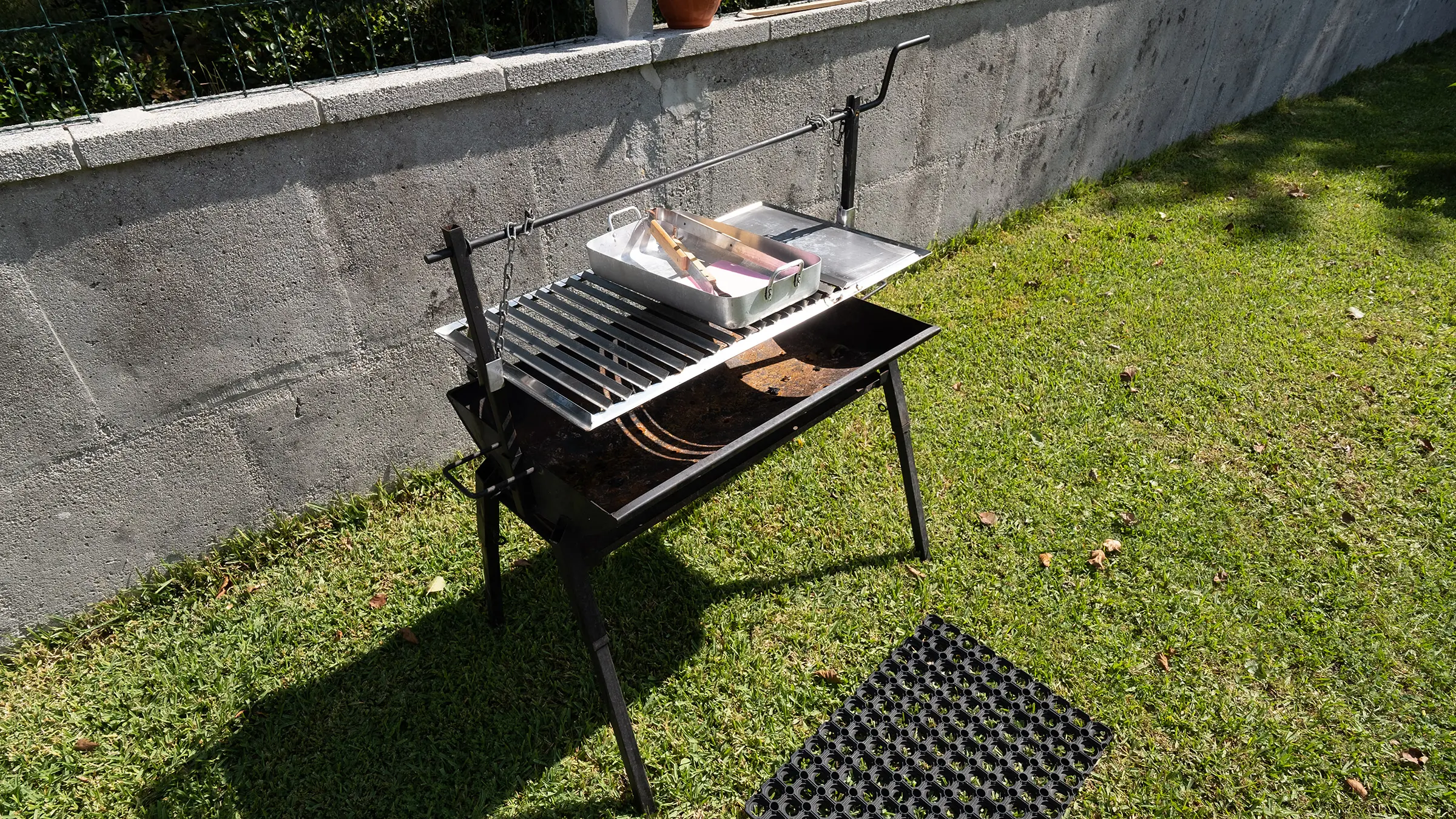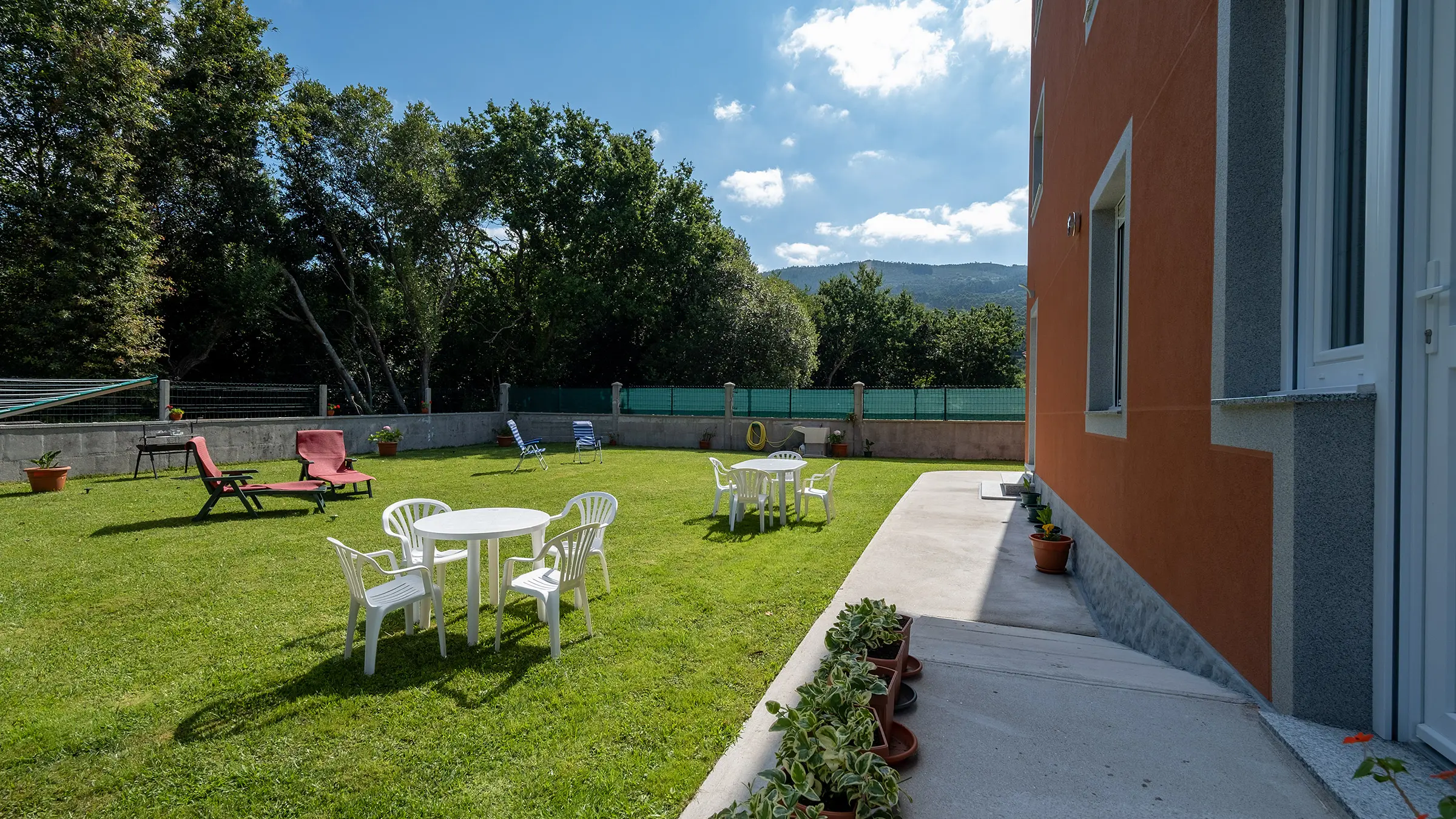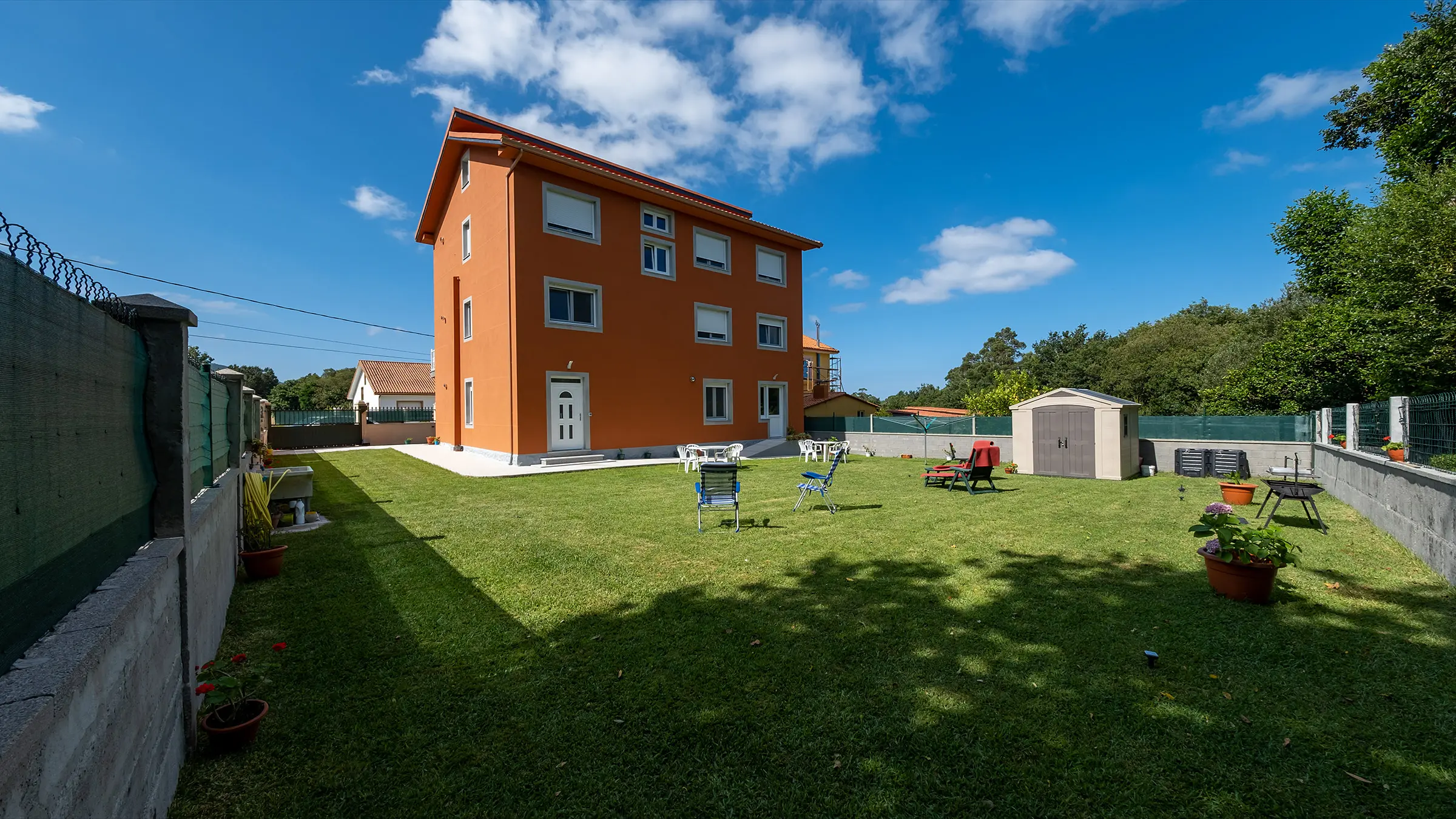 Finca vallada con barbacoa y mobiliario de exterior.