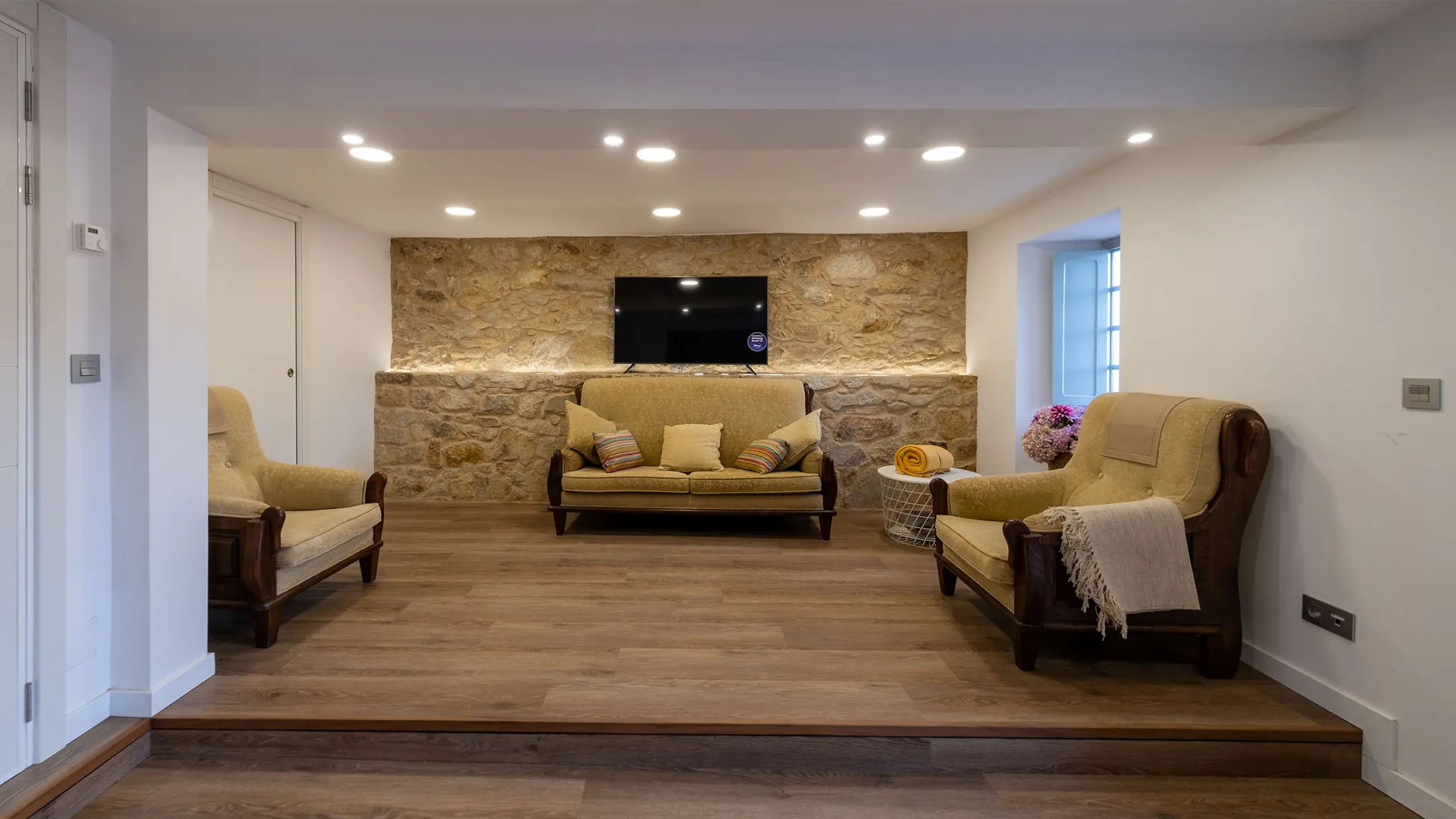 Primer piso: 3 habitaciones dobles, baño con ducha de plato, salita