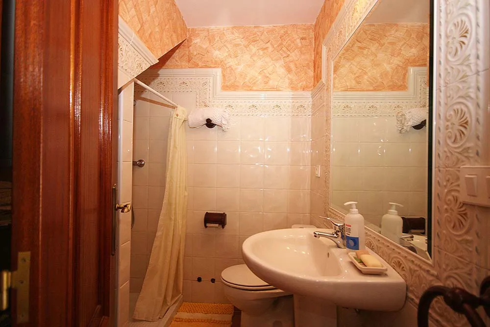 Primera planta: Tres habitaciones, un baño completo.