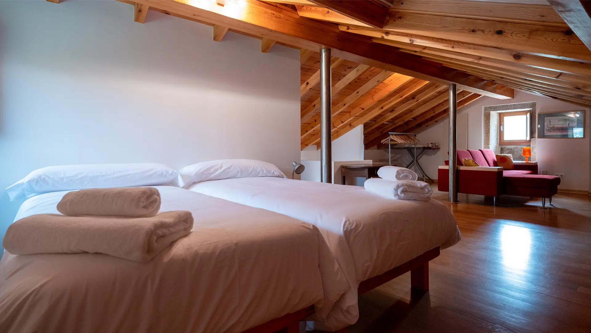 Primer piso: Habitacion con camas gemelas y sala de estar, baño.