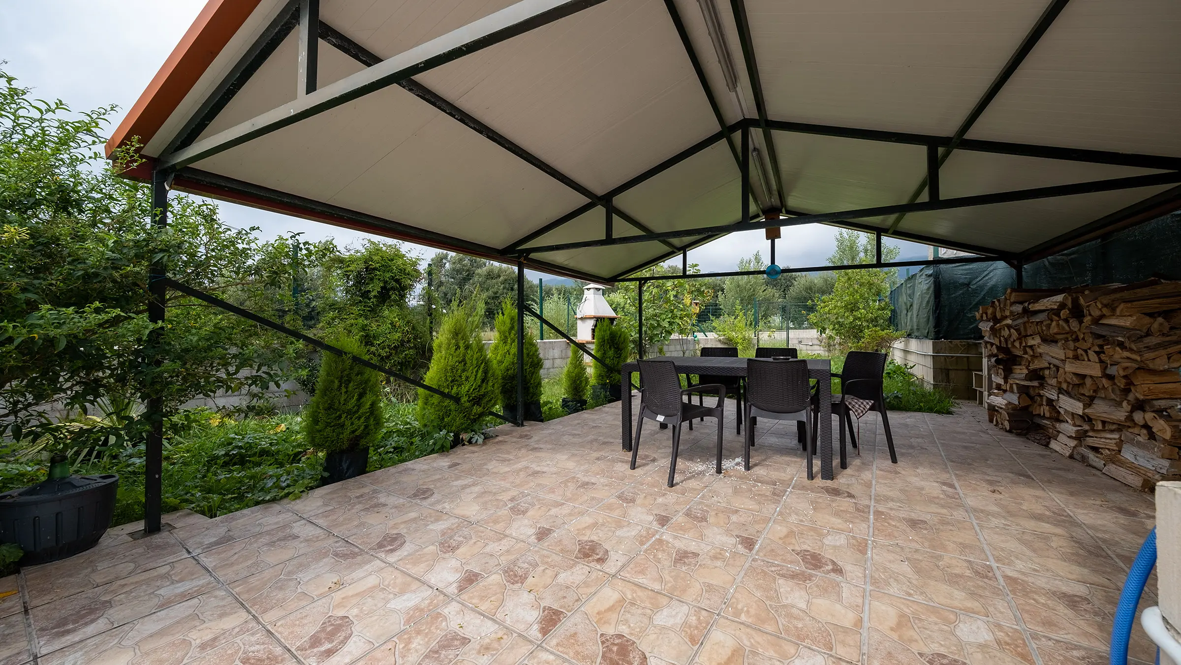 Amplia terraza exterior con cenador y barbacoa. Entorno rural muy tranquilo.