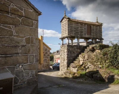 Casa rústica para alquiler de temporada, situada en la aldea de Piñeiros, municipio de Carnota, a 1,5 km de la playa.