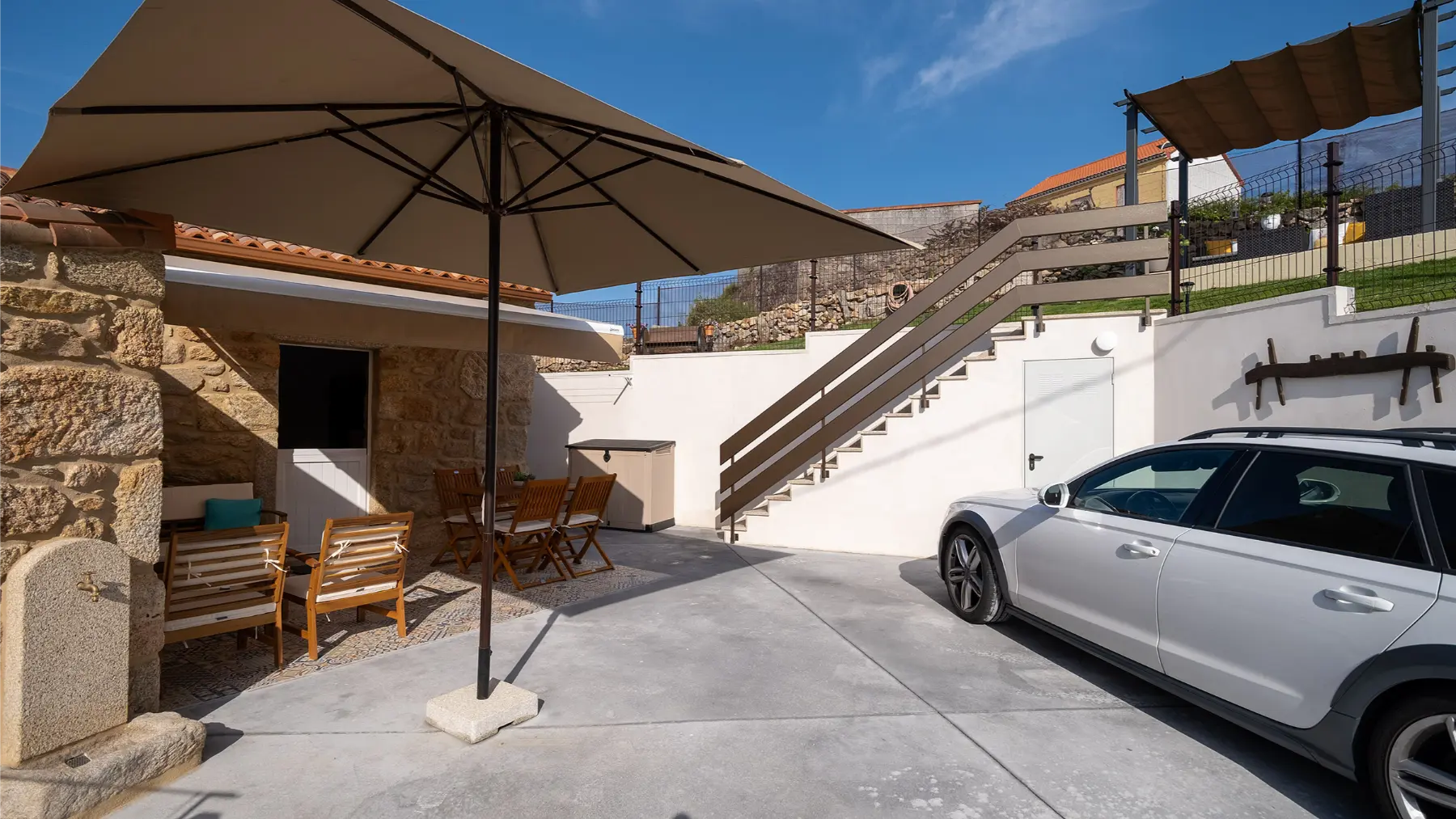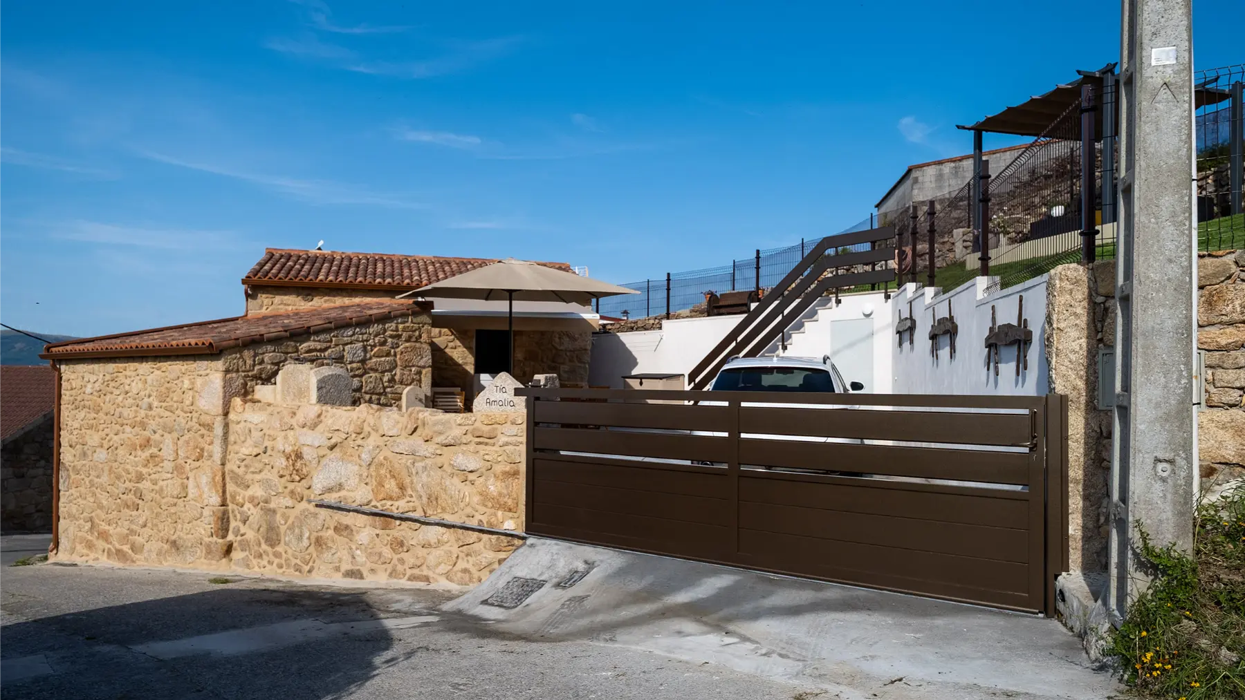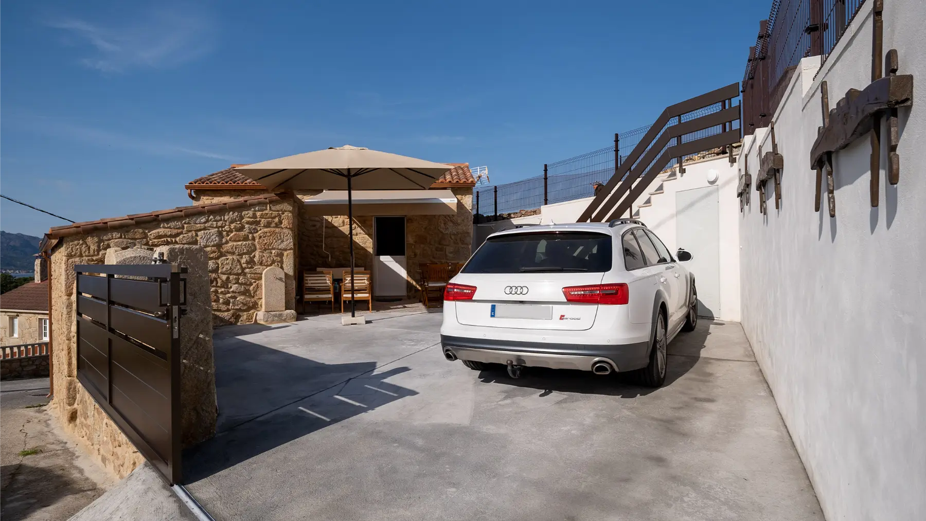 Finca totalmente vallada con zona de aparcamiento.